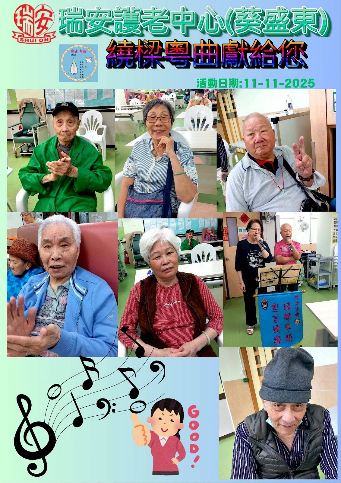 是次活動由3位院友家屬協助,以歌聲為院舍增添氣氛.
